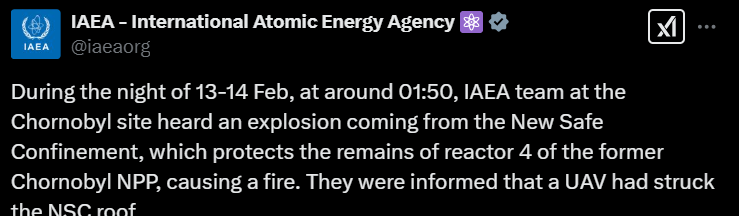 Росіяни вдарили дроном по саркофагу над зруйнованим енергоблоком ЧАЕС напередодні Мюнхенської конференції
