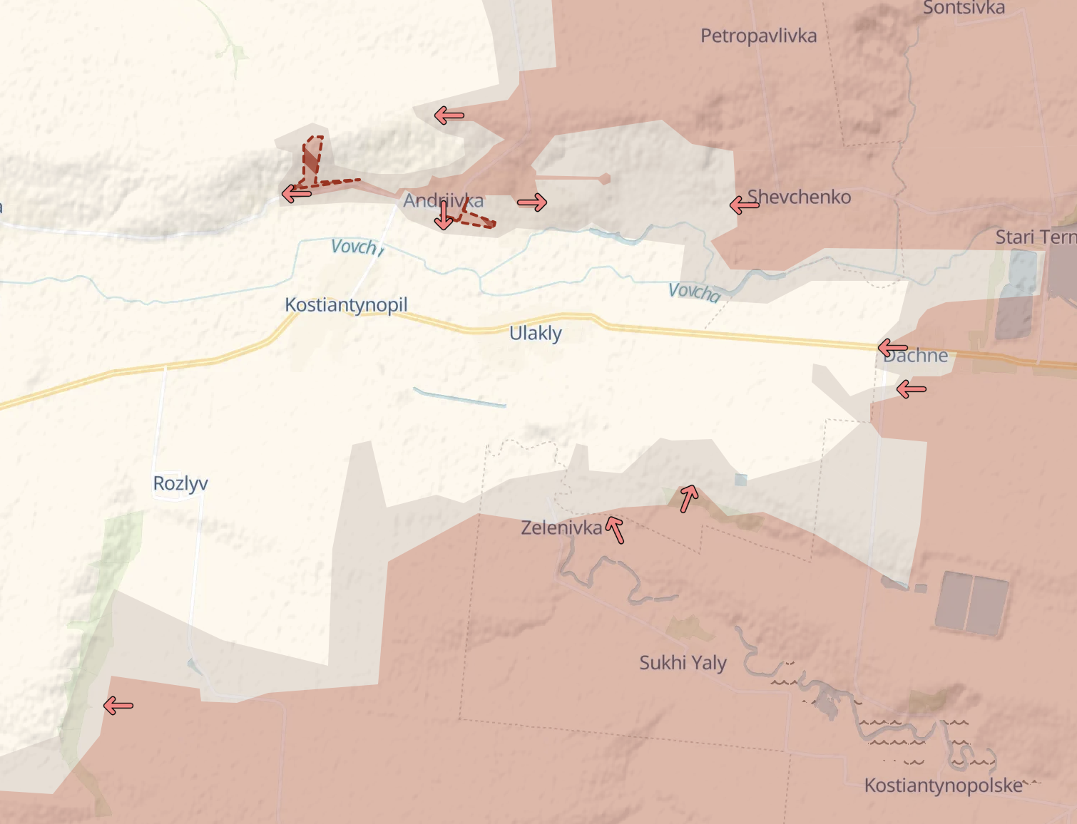 Крім того, чергове просування в РФ є на плацдармі на правому березі Оскола на північ від Дворічної.