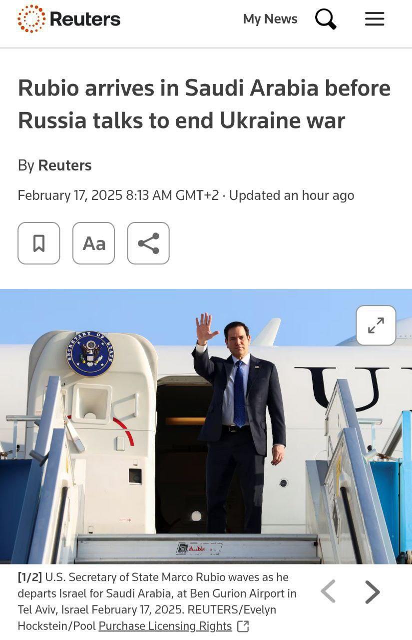 Тим часом, як пише Reuters, держсекретар США Рубіо вже прибув до Саудівської Аравії для переговорів із представниками РФ щодо припинення війни в Україні.