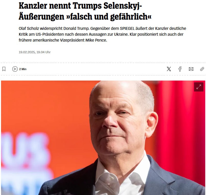 Канцлер Німеччини Олаф Шольц розкритикував президента США Дональда Трампа за те, що останній назвав українського президента Володимира Зеленського "диктатором без виборів".