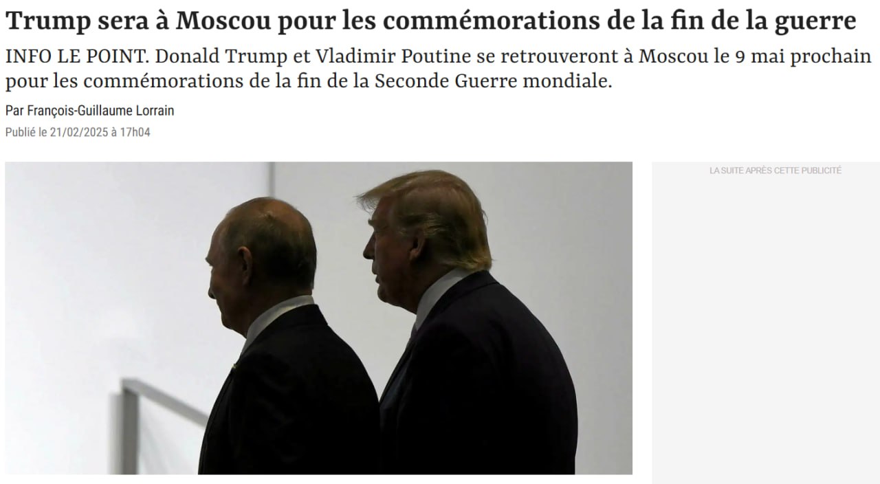 "Мирні переговори, згідно з планом Келлога, завершаться 9 травня. І таким чином 9 травня 2025 року стане днем їхнього тріумфу", - пише Le Point.