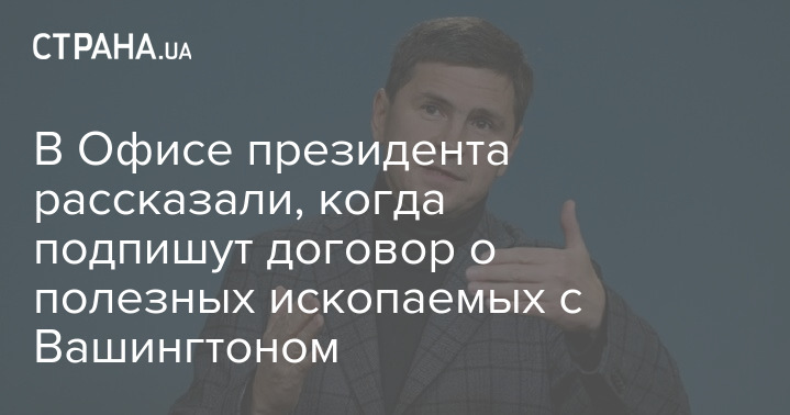 Підписання договору про корисні копалини з Вашингтоном - "питання найближчого часу". Про це заявив радник голови Офісу президента Михайло Подоляк в ефірі телеканалу FREEДОМ.