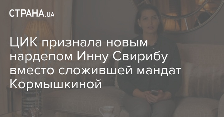 Центральна виборча комісія визнала Інну Свирибу обраним народним депутатом України, отримавши постанову Верховної Ради про дострокове припинення повноважень народного депутата Ірини Кормишкіної (також відома під прізвищем Аллахвердієва).