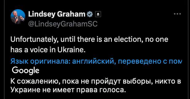 У відповідь на це Грем дав зрозуміти, що вважає проблемою небажання Зеленського оголошувати вибори.