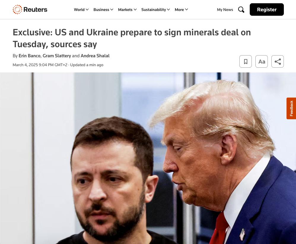 У той же час, як пише Reuters, угода ще не підписана, тому ситуація може змінитися (тобто, можливо, ще нічого сьогодні не підпишуть).