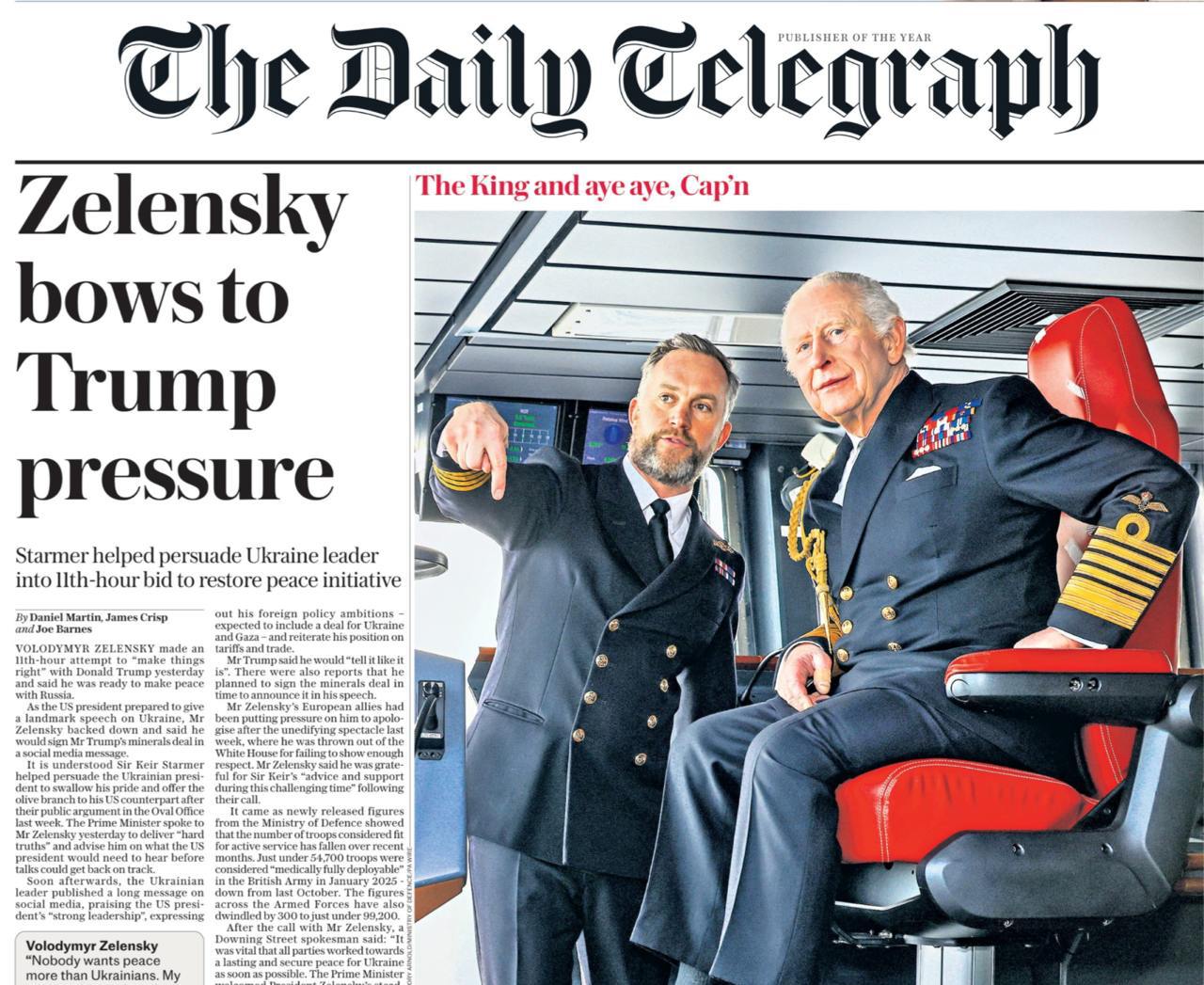 The Daily Telegraph також повідомляє, що "Зеленський поступається тиску Трампа".