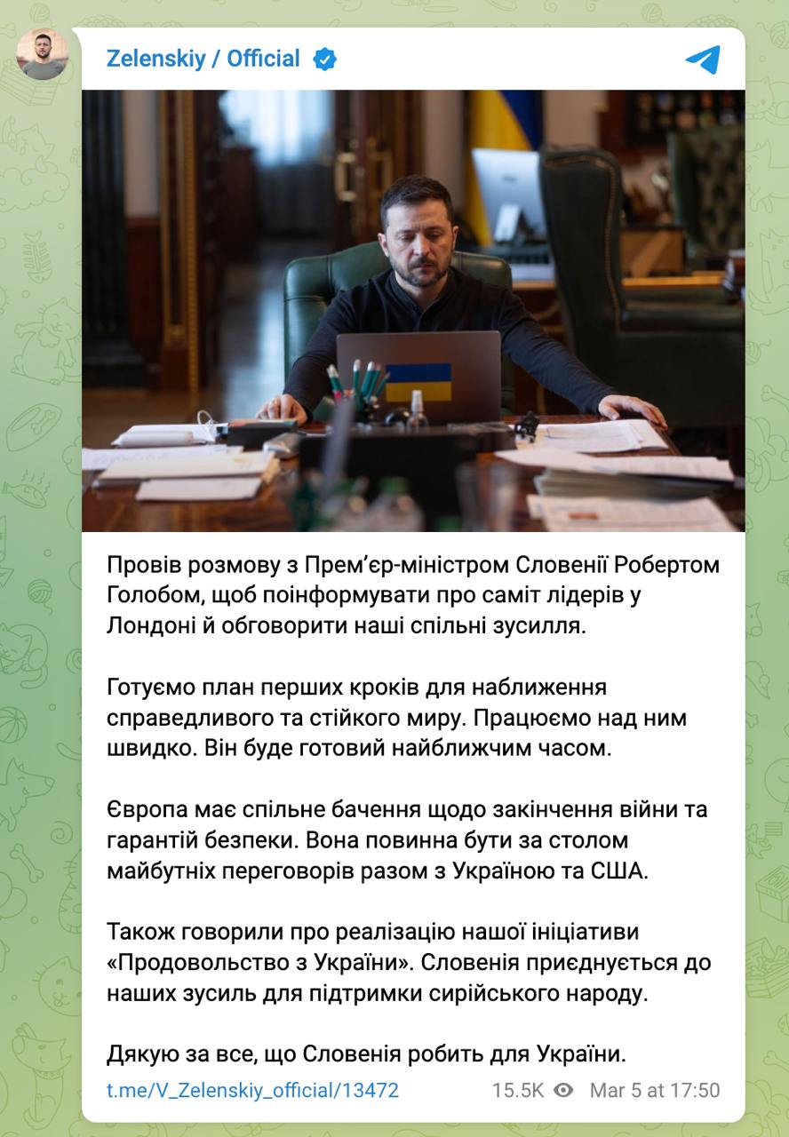 "Готуємо план перших кроків щодо наближення справедливого та сталого миру. Працюємо над ним швидко. Він буде готовий найближчим часом", - написав президент.