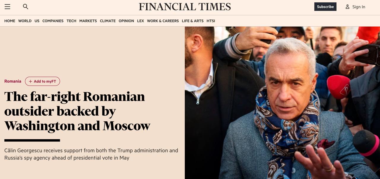 Як сказано в публікації, влада Румунії "приголомшена підтримкою", яку Джорджеску отримав від віце-президента США Джей Ді Венса та американського підприємця Ілона Маска. При цьому видання наголошує, що він уже вдруге "впевнено лідирує на президентських виборах", користуючись активною підтримкою Москви та Вашингтона.