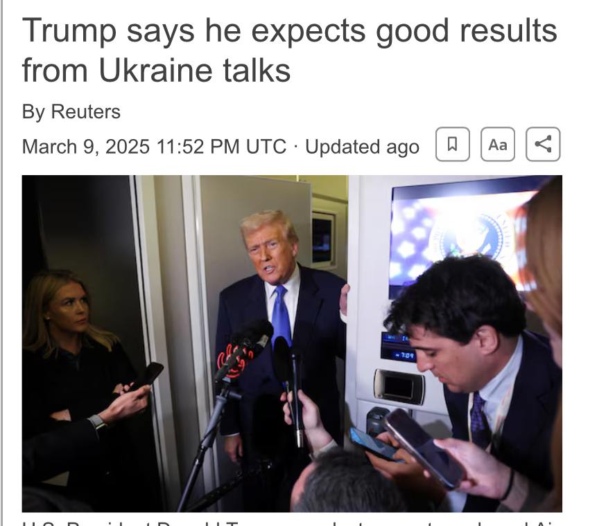 Трамп також повідомив, що очікує на хороші результати від переговорів США з Україною в Саудівській Аравії.