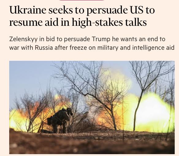 У свою чергу газета Financial Times пише, що тактика України на переговорах – переконати Трампа, що Україна хоче миру та готова до переговорів із РФ. Зокрема, Київ спробує обміняти свою пропозицію про часткове перемир'я з РФ – лише у небі та на морі – на відновлення американської військової допомоги.