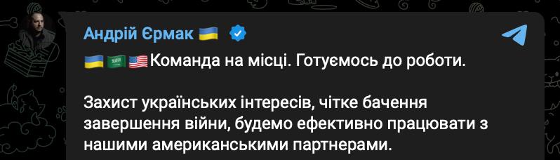 Також у Саудівській Аравії, де відбудуться переговори зі Штатами після закінчення війни в Україні, вже перебуває і голова Офісу президента Андрій Єрмак.