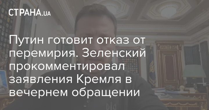Президент України Володимир Зеленський вважає, що глава РФ Володимир Путін "готовить відмову" від тимчасового припинення вогню по лінії фронту.