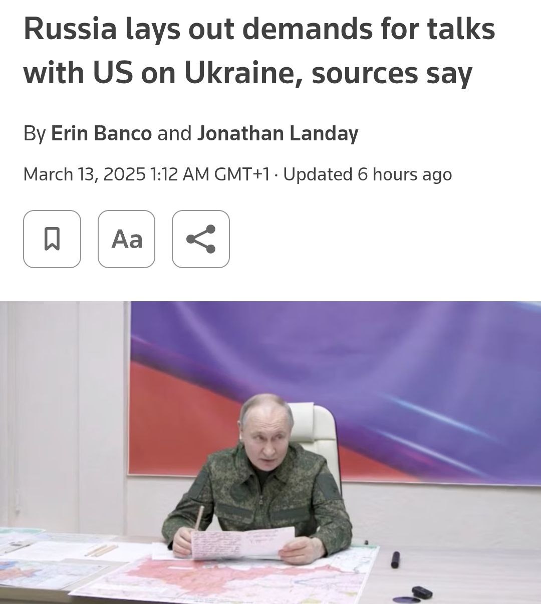 "Справді, переговорники летять і, дійсно, контакти заплановані. Після отримання інформації про підсумки минулих американо-українських переговорів Росія почне формулювати свою позицію, зараз проходить процес отримання цієї інформації. Що стосується переговорних позицій до того, як ці переговори почалися, а вони ще не почалися, напевно, було б неправильно".