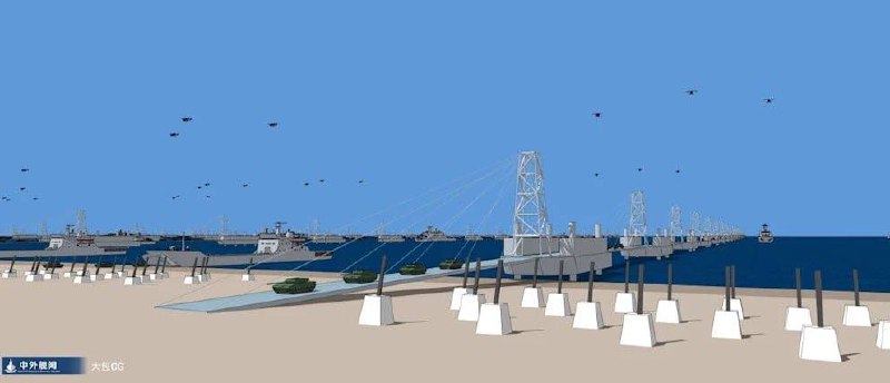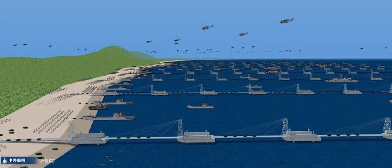 Китайські державні ЗМІ опублікували імітаційні моделі розгортання плавучих мостів після того, як виявили плавучий колос.
