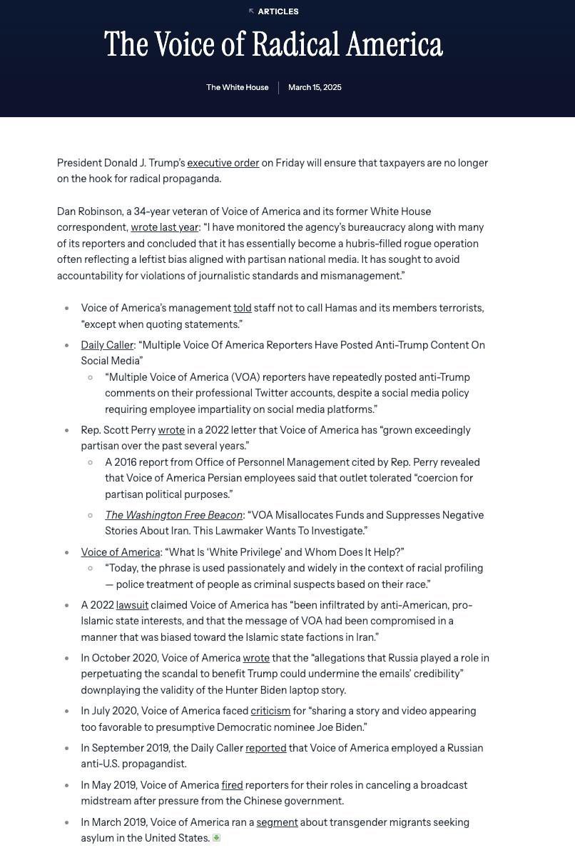 - "багато репортерів "Голосу Америки" неодноразово публікували антитрампівські коментарі", забувши про неупередженість;