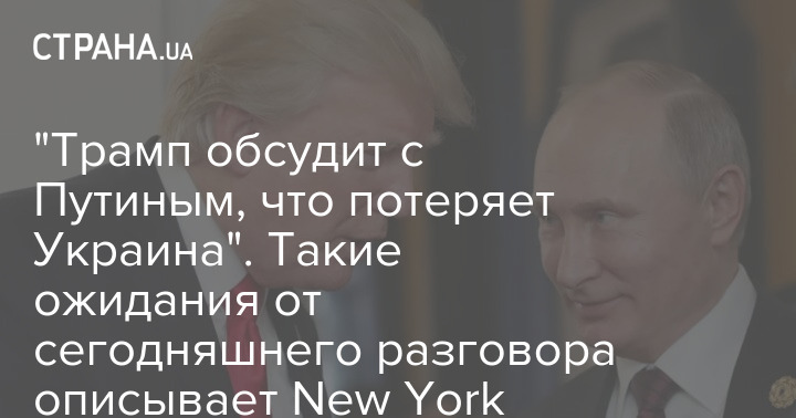 "Президент США Дональд Трамп обговорить із Володимиром Путіним, що втратить Україна" - такі очікування від сьогоднішньої розмови президентів малює газета The New York Times.