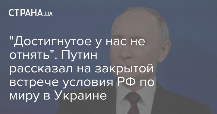 "Досягнуте у нас не відібрати". Путін розповів на закритій зустрічі умови РФ щодо миру в Україні