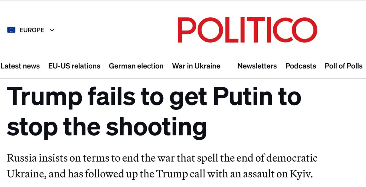 Видання пише, що команда Трампа "ясно дала зрозуміти, що зневажає президента України Володимира Зеленського" після конфлікту в Білому домі, а за допомогою переговорів з опозицією намагається заручитися підтримкою дострокових виборів, які, на їхнє переконання, Зеленський програє.
