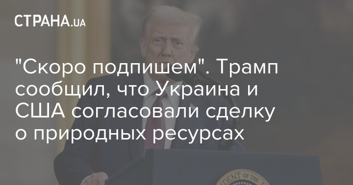 "Незабаром підпишемо". Трамп повідомив, що Україна та США погодили угоду про природні ресурси