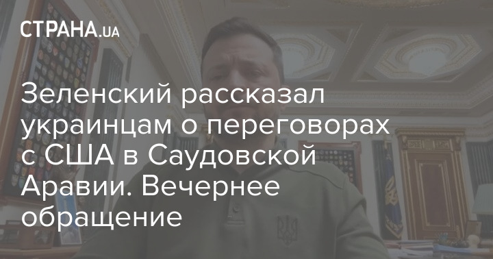 Зеленський розповів українцям про переговори із США у Саудівській Аравії. Вечірнє звернення