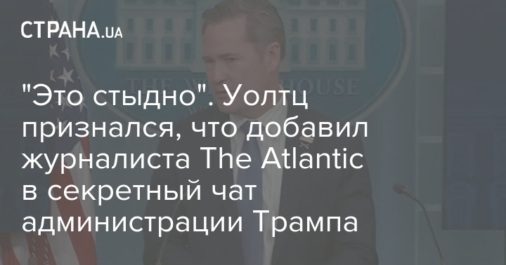 Радник президента США Дональда Трампа з питань національної безпеки Майк Уолтц визнав, що додав у секретний чат головного редактора журналу The Atlantic Джеффрі Голдберга.