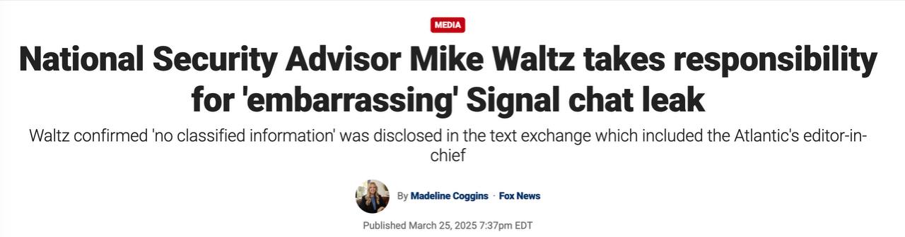 Нагадаємо, напередодні Білий дім офіційно підтвердив інформацію про те, що головного редактора видання The Atlantic Джеффрі Голдберга додали в секретний чат, в якому віце-президент Джей Ді Венс, міністр оборони Піт Хегсет і радник президента США Дональда Трампа з національної безпеки Майк Уолтц обговорювали авіауда.