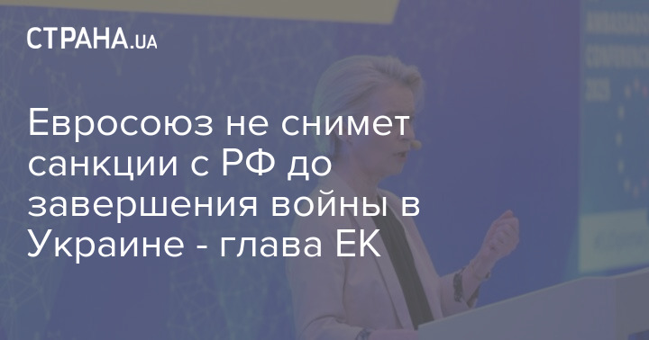 Європейський союз не зніме санкції із Росії до завершення війни в Україні. Про це заявила голова Єврокомісії Урсула фон дер Ляйєн.