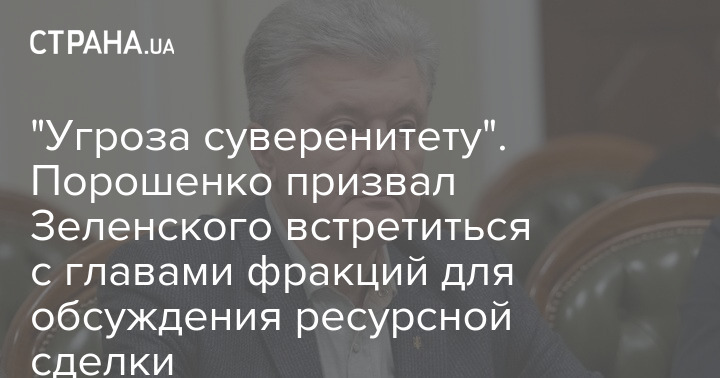 "Загроза суверенітету". Порошенко закликав Зеленського зустрітися з головами фракцій для обговорення ресурсної угоди