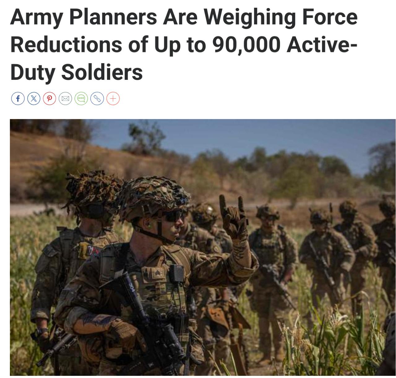 У США розглядають можливість масштабного скорочення чисельності особового складу армії до 90 000 чоловік.
