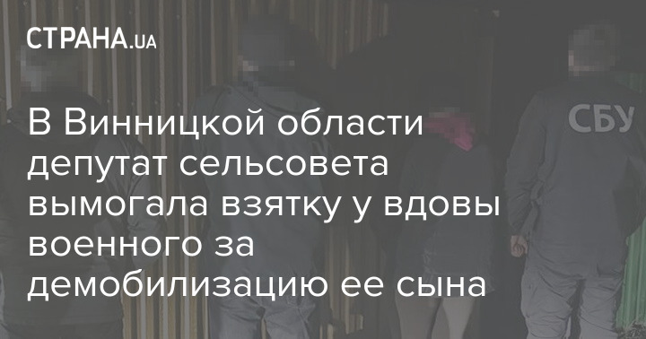 Правоохоронці затримали депутата однієї із селищних рад Вінницької області, яка разом із місцевим адвокатом та його спільником вимагала у вдови загиблого військового гроші за демобілізацію сина. В обмін на хабар вони обіцяли жінці прискорити процедуру демобілізації. А у разі відмови платити погрожували завадити звільненню сина з військової служби.