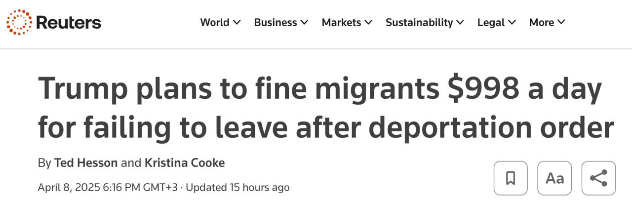 Президент США Дональд Трамп має намір штрафувати мігрантів на 998 доларів за кожен проведений у країні день після рішення суду про примусову депортацію.