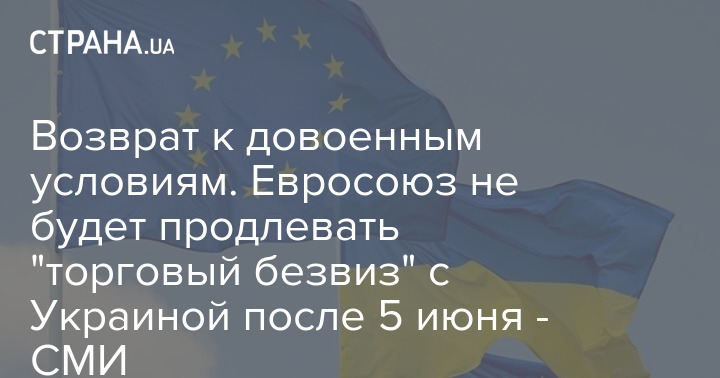 Євросоюз не продовжуватиме "торговий безвіз" з Україною після 5 червня і поверне довоєнні умови.