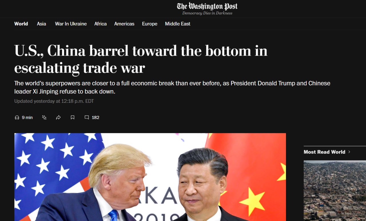 Видання вважає, що і Америка, і КНР "як ніколи близькі до повного економічного краху, оскільки президент Дональд Трамп і китайський лідер Сі Цзіньпін відмовляються відступати у торговельній війні, яка перетворилася на гру "хто перший злякається" з високими ставками".