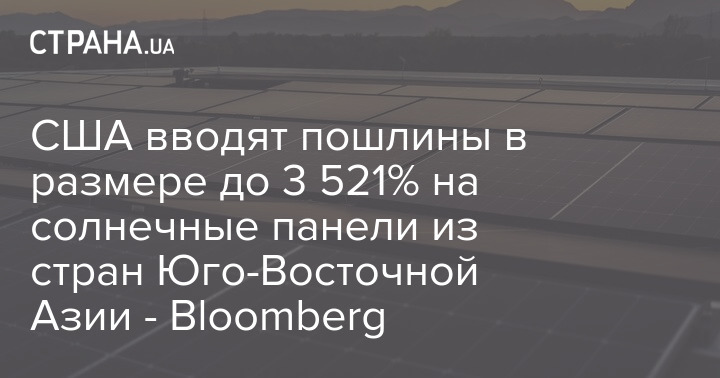 США вводять мита у розмірі до 3521% на сонячні панелі з країн Південно-Східної Азії - Bloomberg