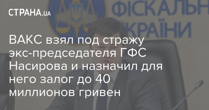 Вищий антикорупційний суд узяв під варту екс-голову Державної фіскальної служби Романа Насірова та збільшив для нього розмір застави з 27 до 40 млн грн.