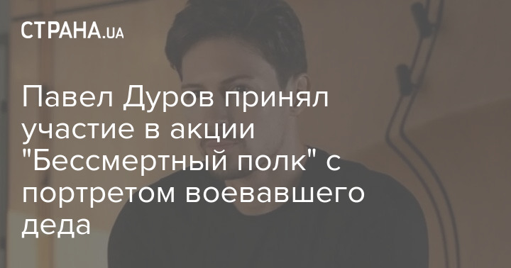 Російський підприємець у сфері інформаційних технологій Павло Дуров привітав користувачів Телеграма з Днем Перемоги та взяв участь в акції "Безсмертний полк", розповівши історію свого діда.