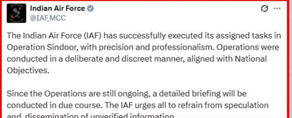 Зазначається, що індійські військові успішно виконали раніше поставлені в рамках операції "Сіндур" цілі "в добре продуманій та стриманій манері".