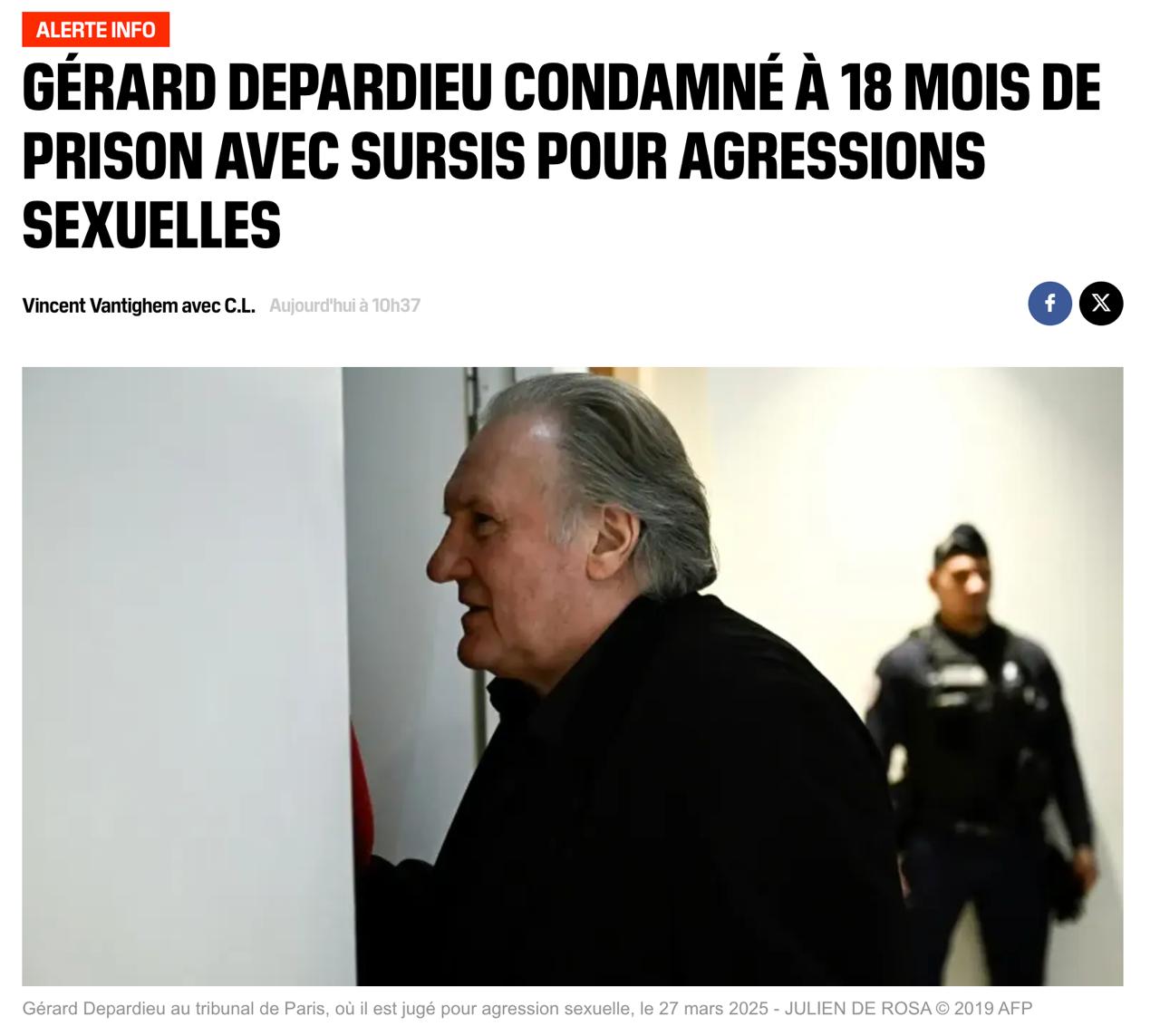 У суді зазначили, що під час вироку врахували вік актора та його стан здоров'я. Депардьє на засіданні суду не було.