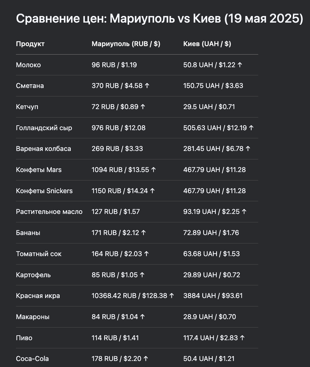 У 10 з 15 позицій ціни в Маріуполі виявилися вищими за київські.