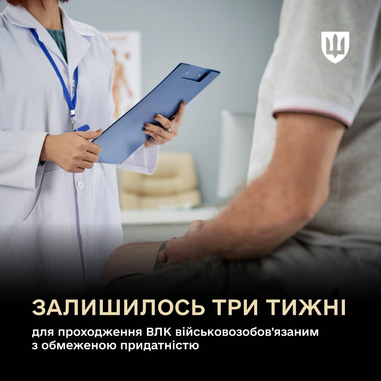 10:16 Три тижні залишилося в обмежено придатних для проходження ВЛК – до 5 червня, нагадує Міноборони.