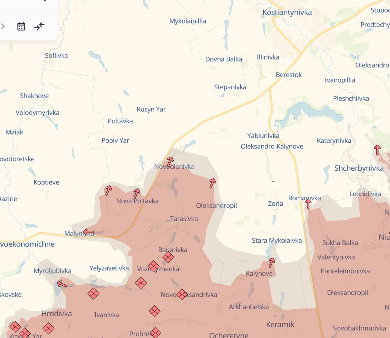 Наразі основною подією на трасі є прорив російських сил до Нової Полтавки, яку, за даними деяких українських оглядачів, РФ уже захопила Це село на північ від дороги до Костянтинівки.