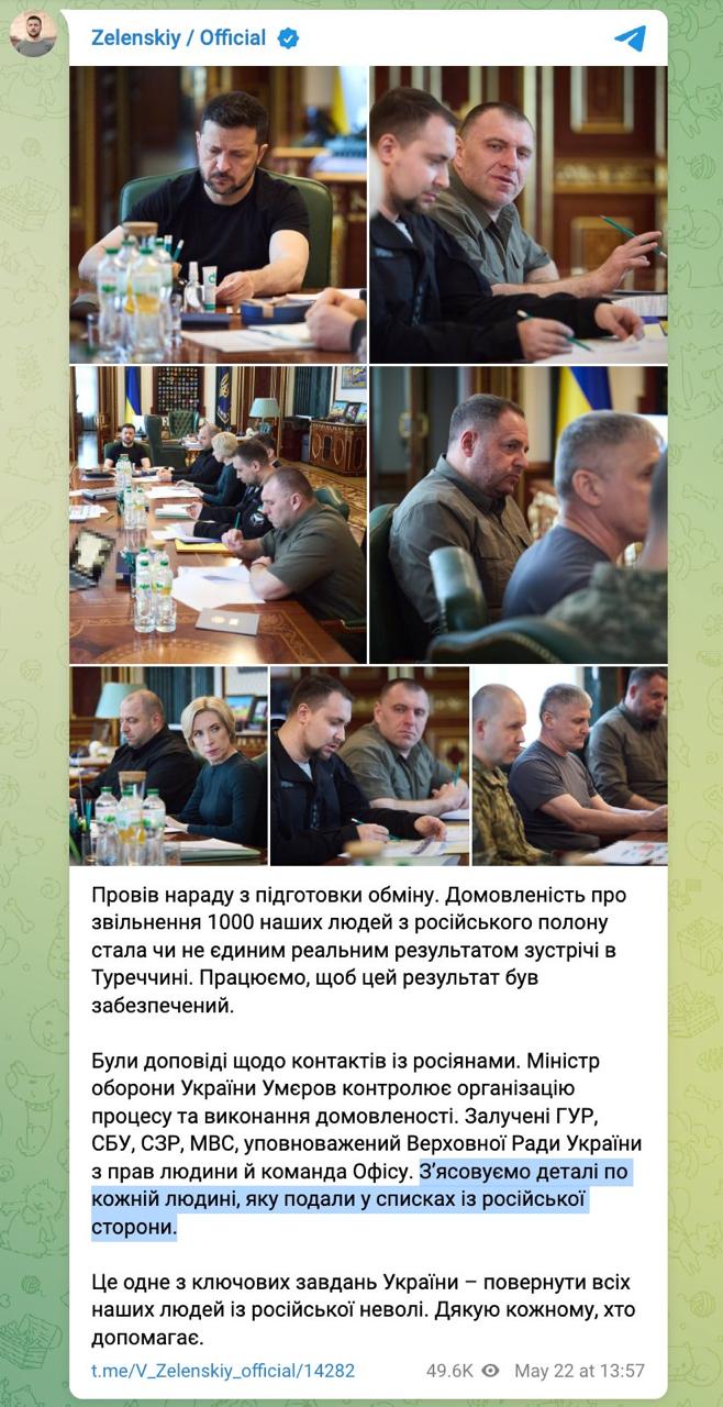 Потім Єрмак знову дав зрозуміти, що з обміном полоненими 1000 на 1000 є проблеми.