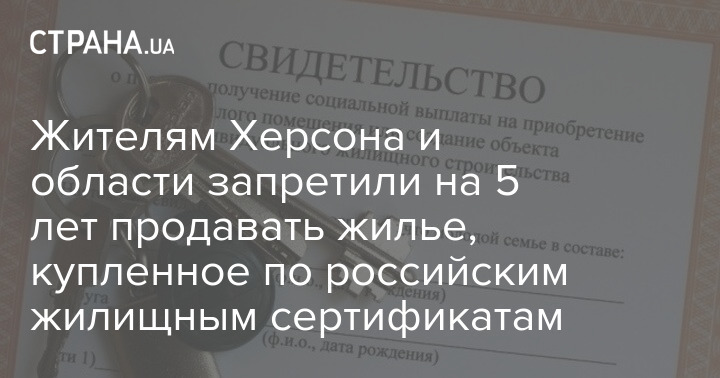 Жителям Херсона та області заборонили на 5 років продавати житло, куплене за російсьі житлові сертифікати