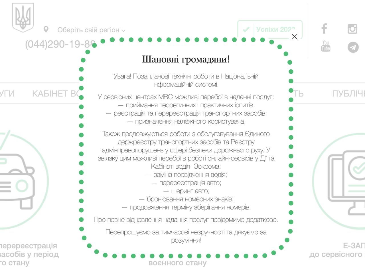 Через збій можуть спостерігатися перебої з реєстрацією транспортних засобів, прийомом іспитів та призначенням належного користувача.