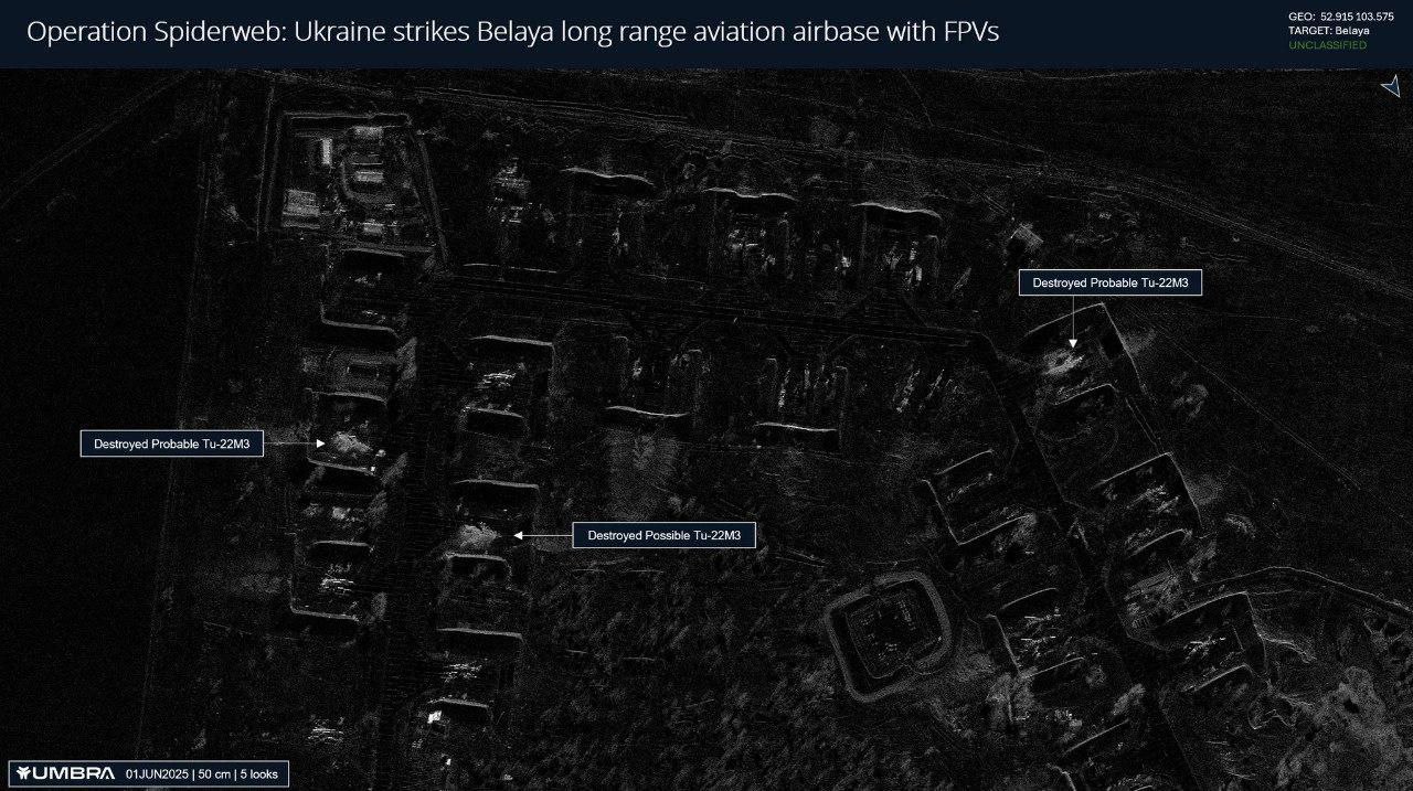 У мережі з'явилися супутникові кадри однієї з атакованих напередодні російських авіабаз - "Бєлая" в Іркутській області, де була найбільше пошкоджених літаків.