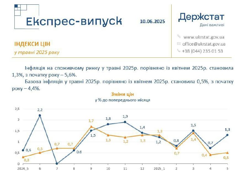 За підсумками травня 2025 року, інфляція в Україні прискорилася з 15,1% до 15,9% у річному обчисленні. За травень вона збільшилась на 1,3%, а з початку цього року – на 5,6%.