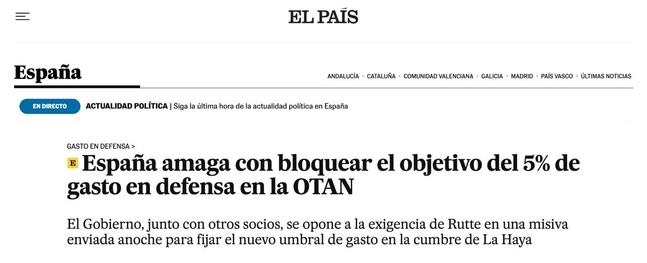 Іспанія та ще кілька країн можуть заблокувати зобов'язання збільшити оборонні витрати до 5% - El Pais