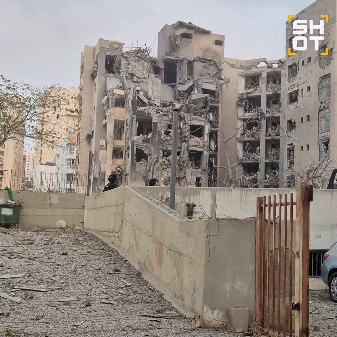 Повідомляється, що під час ранкових обстрілів ракета потрапила в житловий будинок у Беер-Шеві. На відео – приліт, на фото – наслідки.