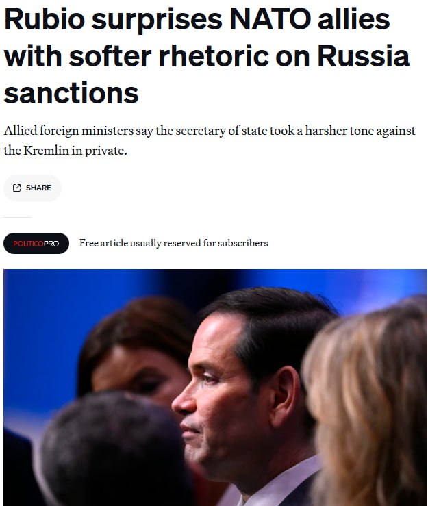 "Під час вечірньої бесіди у вівторок на приватній вечері, присвяченій Україні, Рубіо натякнув, що Сенат, швидше за все, займеться питанням посилення санкцій проти Росії після того, як завершить роботу над податковою та бюджетною ініціативою президента Дональда Трампа", - повідомляє видання з посиланням на чотирьох неназваних європейських дипломатів.