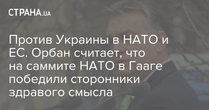 Прем'єр Угорщини Віктор Орбан вважає, що "прихильники здорового глузду", які виступають проти ухвалення України до НАТО, здобули перемогу на саміті альянсу в Гаазі.